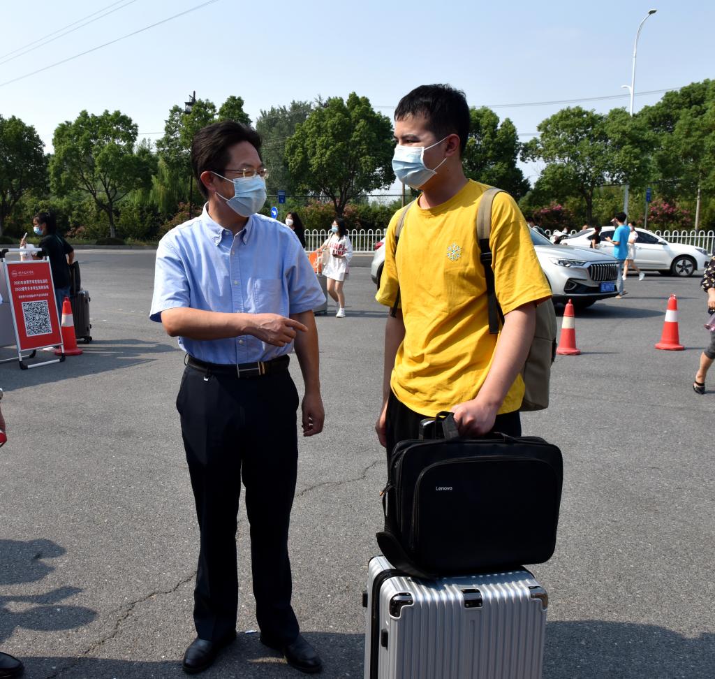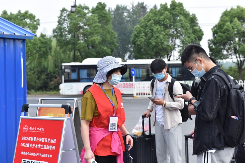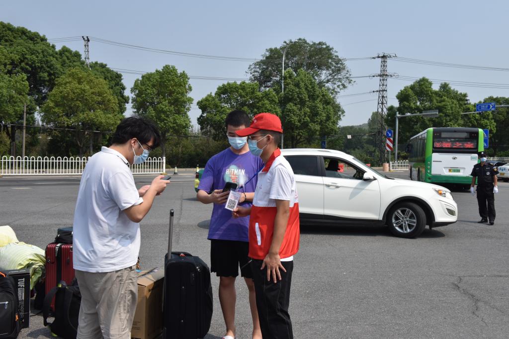 “同学,请扫一扫返校码,出示三天核酸检测结果和行程码……”9月9日,宣传部发布学生返校期间教职工志愿者安排的通知,各部门纷纷响应。学生返校期间,师生志愿者在校门口引导学生有序进入校门,物业志愿者为学生行李进行消杀,保卫处志愿者指挥车辆交通,图书馆志愿者引导学生在入学通道前分流、协助学生搬运行李……有200余名教工志愿者和近300名学生志愿者参与学生报到进校“四查”、核酸检测、快递点疏通、信息流调等工作中。