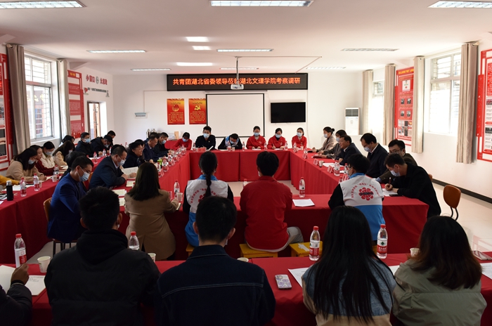 调研座谈会上,宋双伟对周森锋来校指导工作表示欢迎,并介绍了学校人才培养等相关工作。校团委副书记龚丽丽汇报了学校共青团工作,物电学院分团委书记黄河分享了“周末义教”志愿服务开展情况,“湖小文”宣讲团团长胡紫怡同学交流了学习二十大精神体会及“湖小文”宣讲团相关工作。