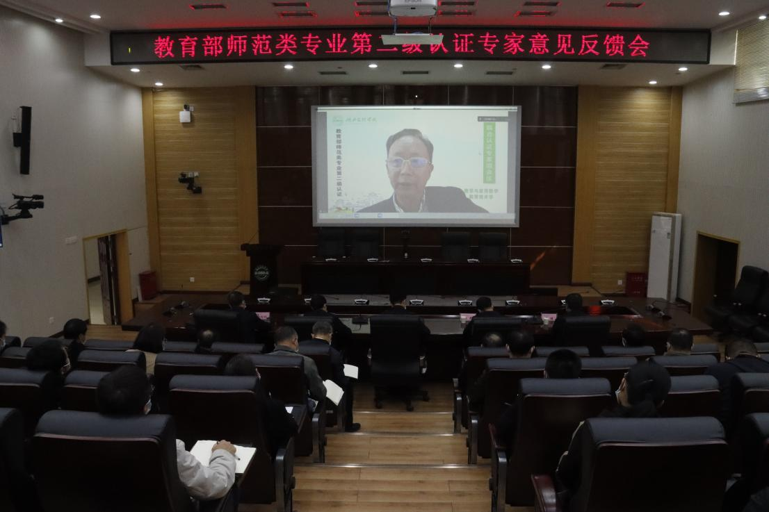 在反馈会上,马力教授代表联合认证专家组对考查情况做总体反馈,王建军教授、周跃良教授分别对两个专业认证情况进行初步反馈,专家组成员详细反馈了所考查专业存在的问题并提出了问题改进的意见建议。数学与统计学院、教育学院院长分别进行了表态发言。