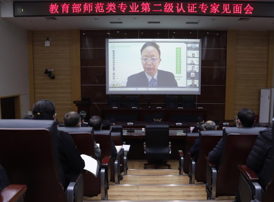 见面会上,马力教授就师范类专业认证工作的意义、任务、要求等进行了说明,表示专家组将聚焦师范类专业认证的“主线”和“底线”,严格按照第二级认证的标准和要求,高质量开展考查工作。校长张彦铎代表学校对专家组线上考查工作表示欢迎和感谢,并简要介绍了学校办学基本情况和师范教育改革发展情况。张彦铎指出,师范教育始终是学校事业不可或缺的重要组成部分,振兴师范教育是新时代高等教育改革发展的重要命题,也是学校“十四五”事业发展的重要任务。此次师范专业认证考查既是对这两个专业办学水平的全面体检,也是促进我校师范专业加强内涵建设的重要契机,希望专家组悉心指导、倾心指教,帮助学校找准差距、补齐短板,推动师范教育迈向新的台阶。会上,两个专业的负责人先后做了专业认证补充汇报,专家组就自评报告有关问题进行了询证