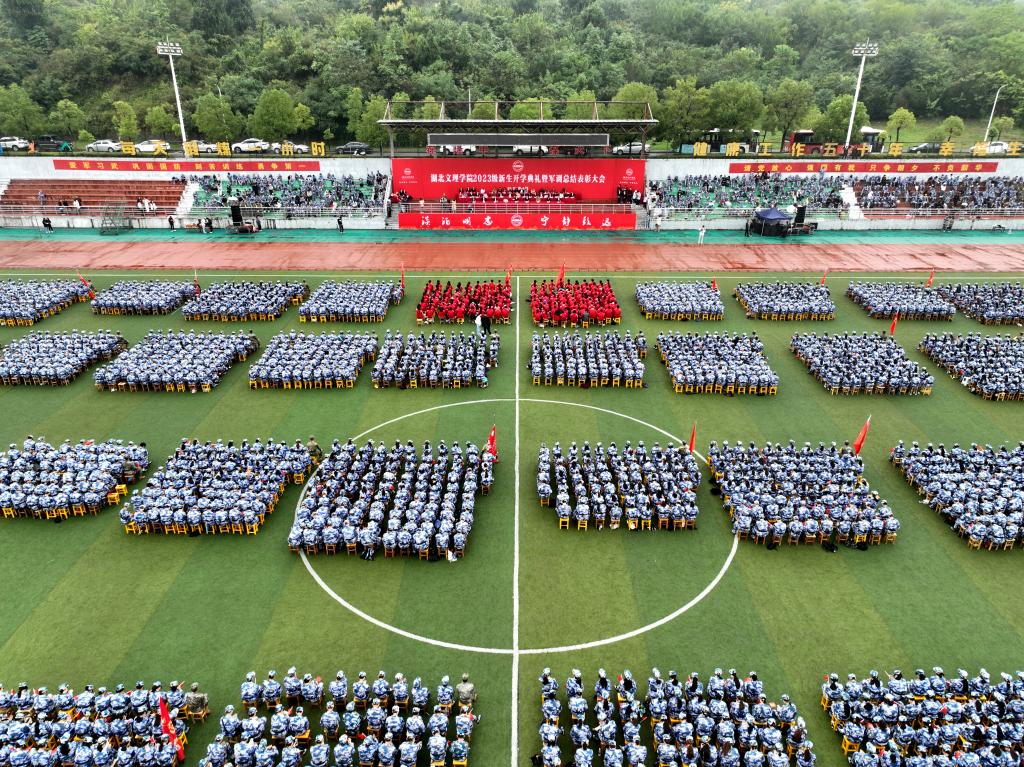 学校在校校领导,2023级全体新生,教师代表,各二级学院院长、党委书记,学校大学生思想政治工作组成员单位负责人参加大会。