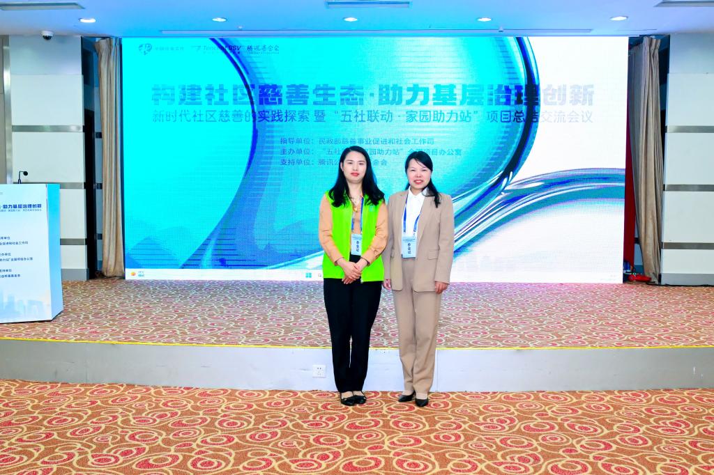 罗学莉(右)与优秀项目社工王桂菊(左)会议现场合影