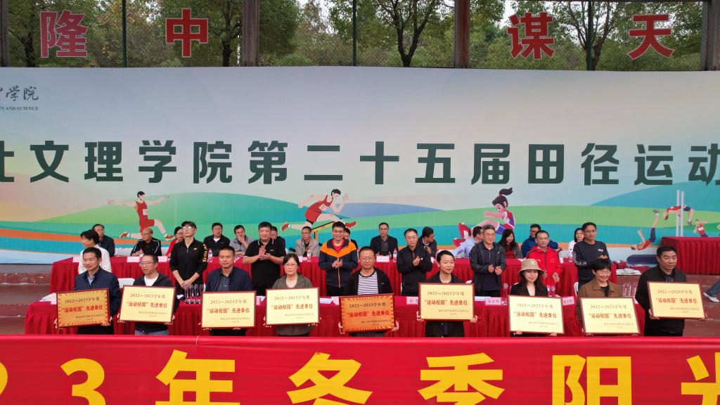 闭幕式上,总裁判长周福利宣布比赛结果;体委副主任何忠宣读《关于表彰2022-2023学年度“运动校园”建设先进单位的决定》,汽车与交通工程学院、计算机工程学院、数学与统计学院、医学部、资源环境与旅游学院、土木工程与建筑学院、教育学院、经济管理学院和体育学院等学院获评2022-2023 “运动校园”建设先进单位。