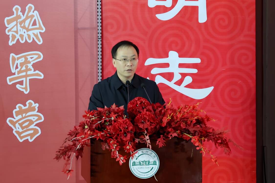 会上,襄阳市军分区副司令员、市征兵办公室主任刘瑞江作动员讲话,号召青年学子积极响应祖国召唤,传承红色基因勇担重任,到火热的军营中去,在实现强国梦、强军梦的征程中奉献青春、实现价值。襄阳市政府副秘书长赵文才宣读《省征兵办 省教育厅关于2023年度“省级示范高校征兵工作站”评选情况的通报》,军地领导为我校授“省级示范高校征兵工作站”牌匾,襄阳职业技术学院获“市级示范高校征兵工作站”授牌。