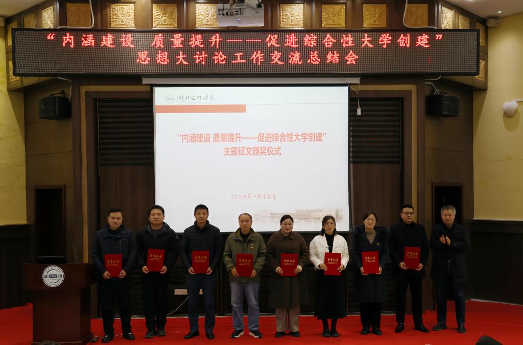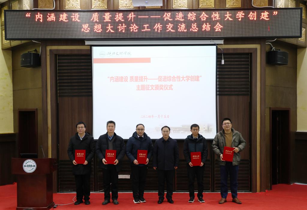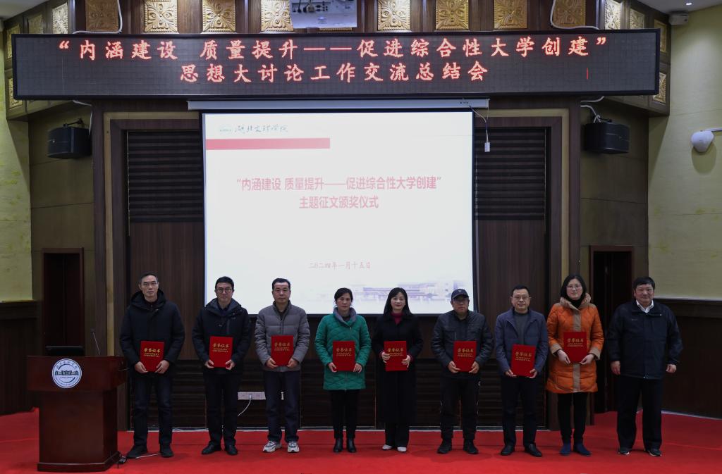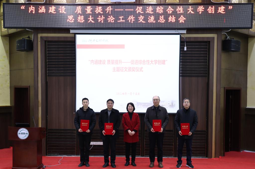 会上对思想大讨论主题征文优秀作者进行了表彰。学校党委副书记、副校长张樊宣读表彰文件,校领导为主题征文获奖代表颁发凯发app官网的荣誉证书。