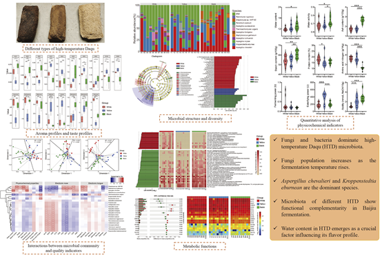 (食品·化工学院 通讯员 赵慧君)近日,食品科学与化学工程学院酿酒技术产业学院传统发酵食品团队在农林科学领域期刊food research international发表了学术论文microbial communities, functional, and flavor differences among three different-colored high-temperature daqu:a comprehensive metagenomic, physicochemical, and electronic sensory analysis,侯强川博士为论文第一作者,郭壮教授为通讯作者,我校为第一单位和唯一通讯单位,研究工作得到湖北省自然科学基金和湖北文理学院教师科研能力培育基金“科技创新团队”的资助,研究工作以湖北省食品配料工程技术研究中心和襄阳市酱香型白酒固态发酵企校联合创新中心为依托开展。