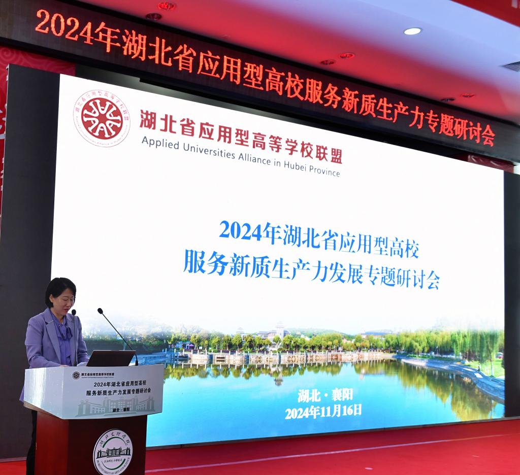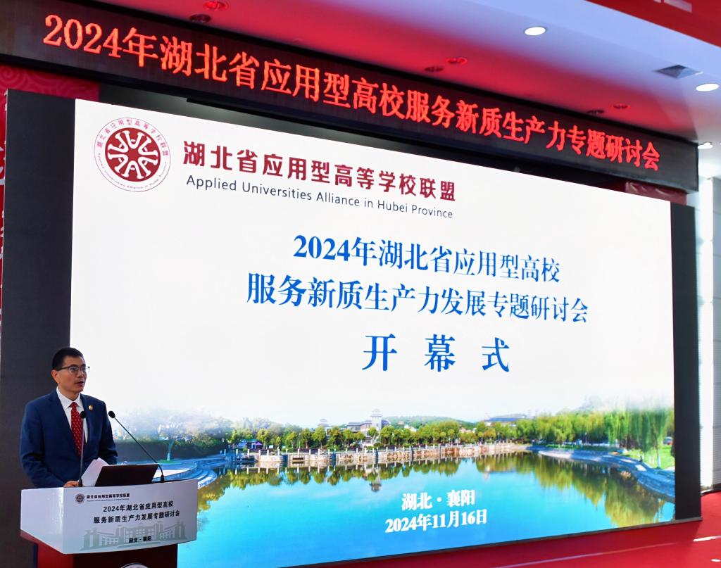 (新闻网记者 蔡晨)11月15日至16日,2024年湖北省应用型高校服务新质生产力发展专题研讨会在我校举行。省教育厅副厅长戴伟出席研讨会并讲话,学校党委书记吴超仲主持开幕式并致欢迎辞,湖北省应用型高校联盟理事长、湖北理工学院党委副书记、校长李社教作联盟工作报告。省教育厅发展规划处处长闵石键,高教处处长崔锋出席研讨会。