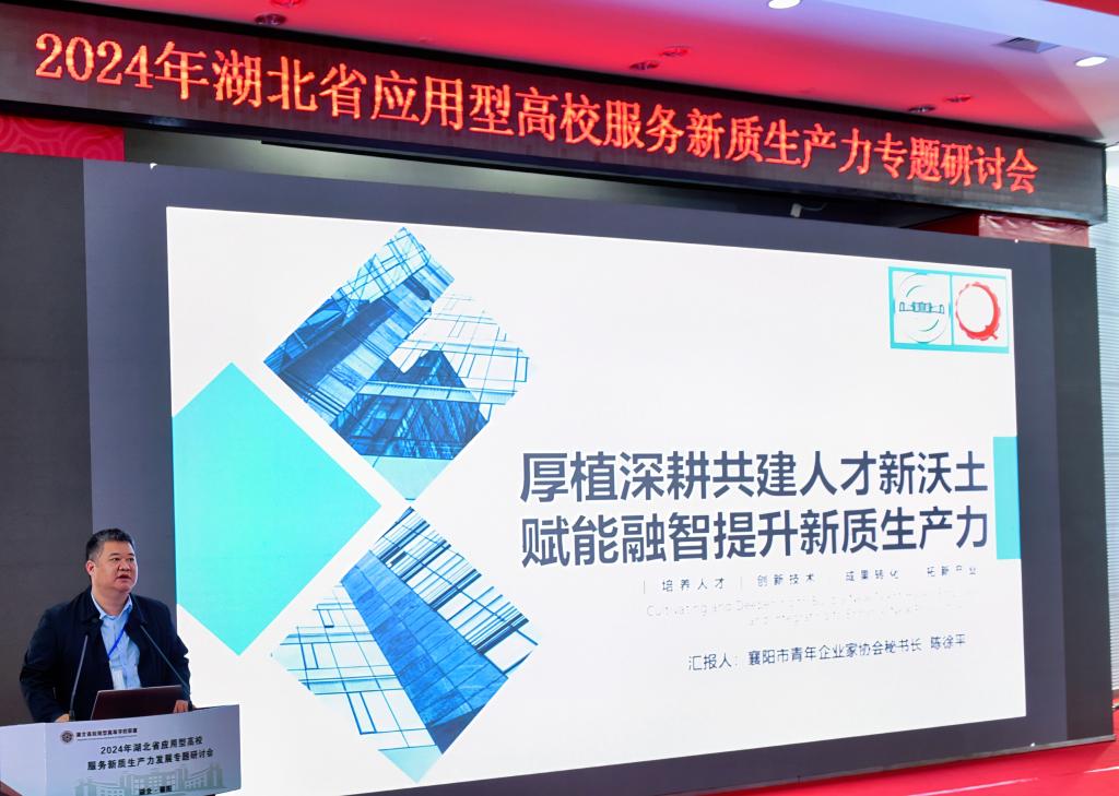 主题发言阶段,湖北汽车工业学院党委副书记、校长王晓以《深化产教融合打造卓越汽车工程师人才培养基地》为题,湖北文理学院党委副书记、校长张彦铎以《多措并举提升服务地方能力 奋力建设高水平应用型综合性大学》为题,湖北理工学院党委常委、副校长冯运仿以《坚持“产教融合” 推进“校地共生”》为题,武汉工程科技学院校长储祖旺以《新时代应用型本科高校转型发展的战略管理》为题,襄阳市青年企业家协会秘书长陈徐平以《厚植深耕共建人才新沃土 赋能融智提升新质生产力》为题,分别结合所在单位情况和工作实际作主题发言。