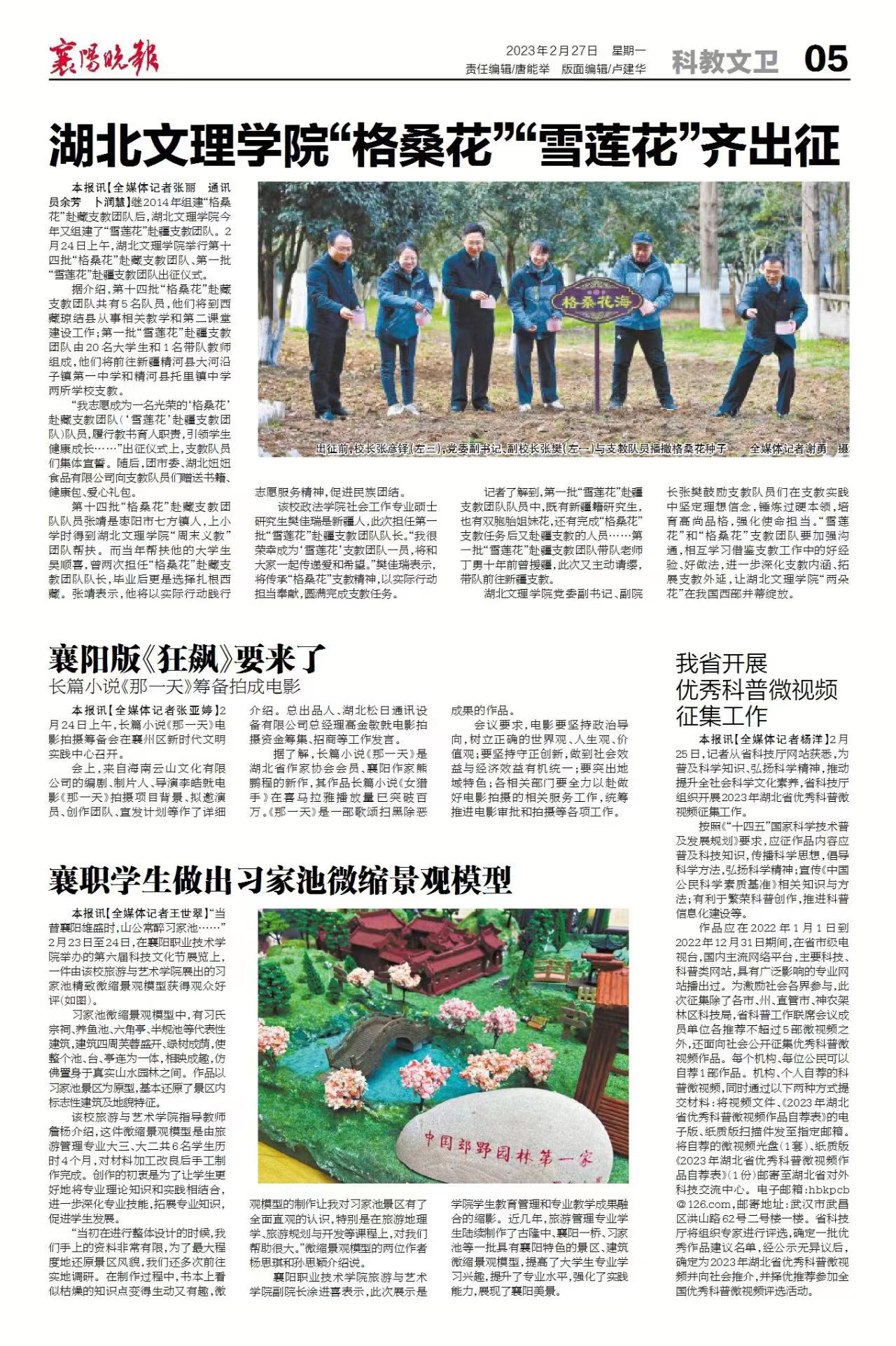 湖北文理学院党委副书记、副院长张樊鼓励支教队员们在支教实践中坚定理想信念,锤炼过硬本领,培育高尚品格,强化使命担当。“雪莲花”和“格桑花”支教团队要加强沟通,相互学习借鉴支教工作中的好经验、好做法,进一步深化支教内涵、拓展支教外延,让湖北文理学院“两朵花”在我国西部并蒂绽放。