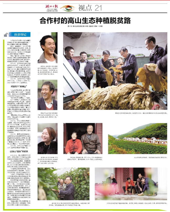 编者按:自2014年保康合作村成为学校定点扶贫村以来,5年时间,学校利用人才、科技和智力优势,投入资金,着力改善合作村产业结构,围绕高山有机蔬菜种植、名贵中药材种植、生态旅游三大项目,开展科技扶贫、产业扶贫、旅游扶贫,走出了一条具有高校特点的精准扶贫路。10月28日,《湖北日报》整版报道我校开展的精准扶贫之路。