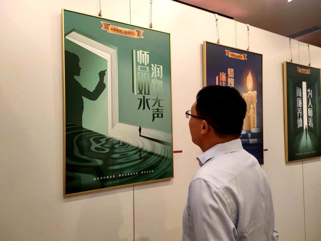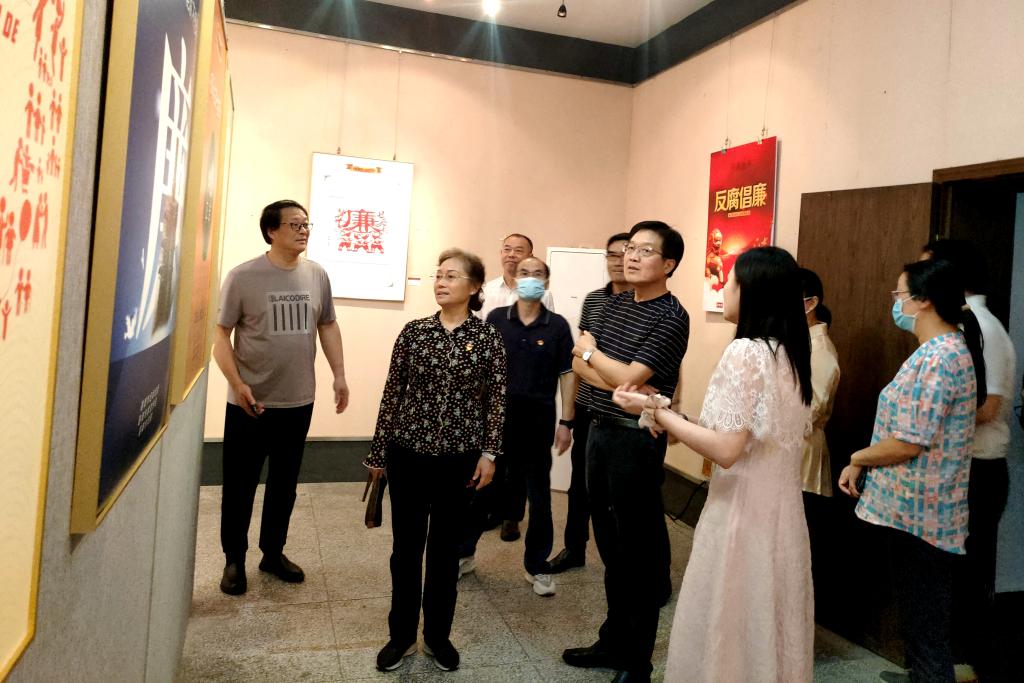 开展仪式结束后,师生们步入美术学院展览馆欣赏展出作品,交流探讨作品的蕴意和意境,感悟作者对廉洁文化的独特理解,在美的熏陶中得到启迪和教育。
