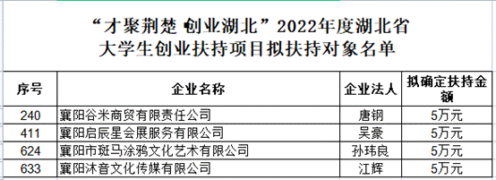 学校获2022年度湖北省大学生创业扶持项目扶持对象名单