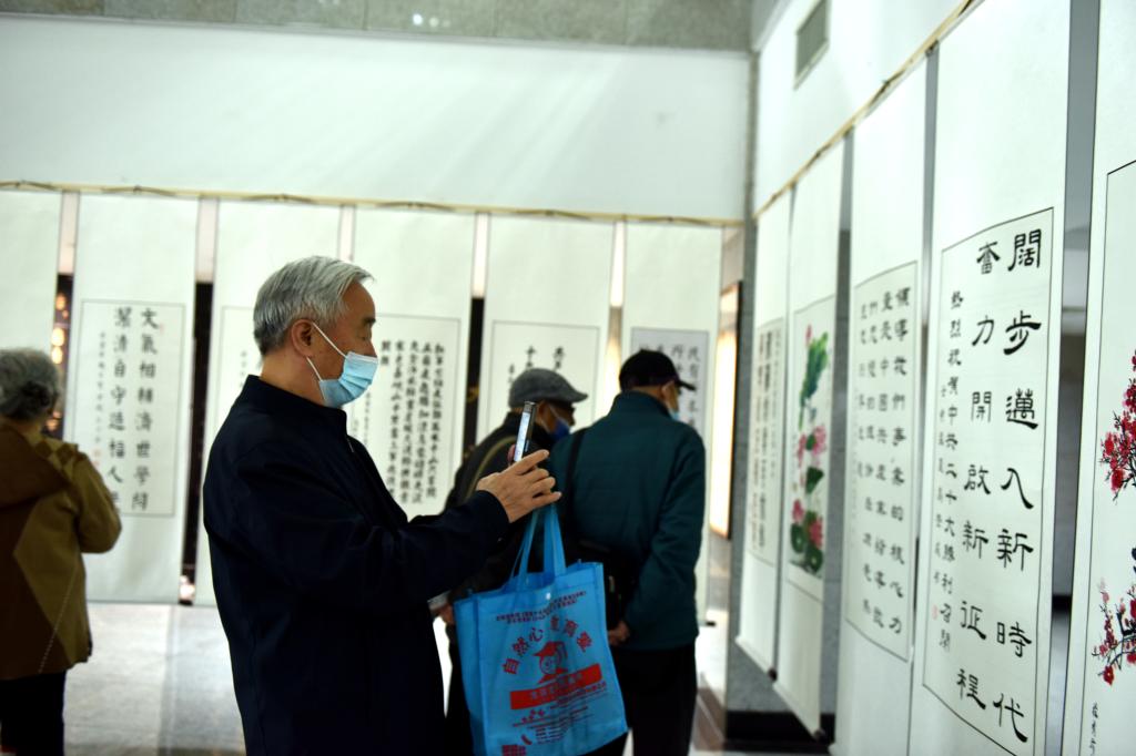 展览现场,一幅幅作品主题鲜明、感情真挚,全方位展示了学校老年书画爱好者的艺术水平。老同志用翰墨丹青抒发爱党爱国的家国情怀,格调高雅、主题鲜明,向党的二十大热忱献礼。