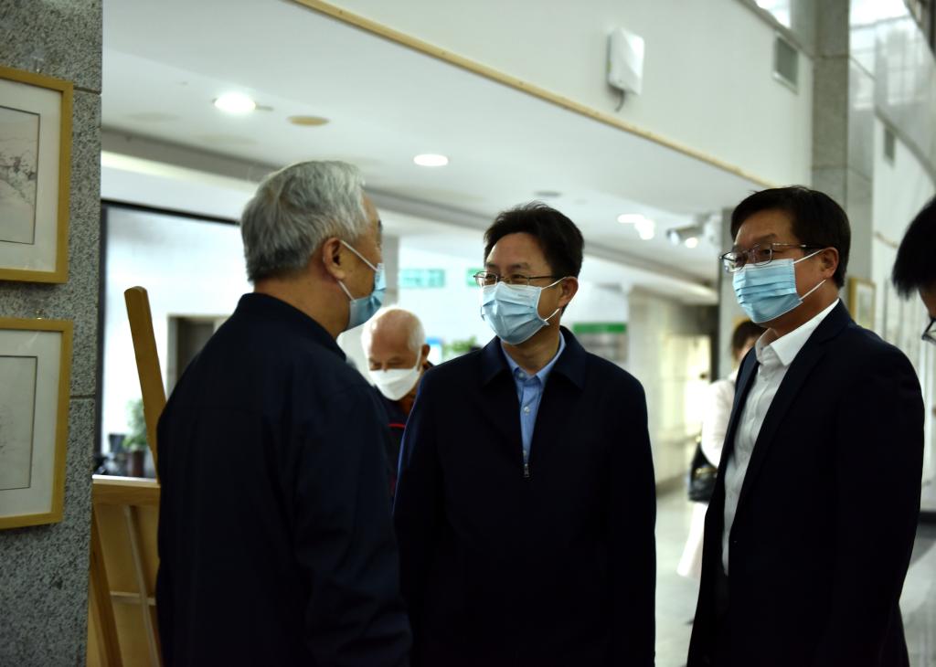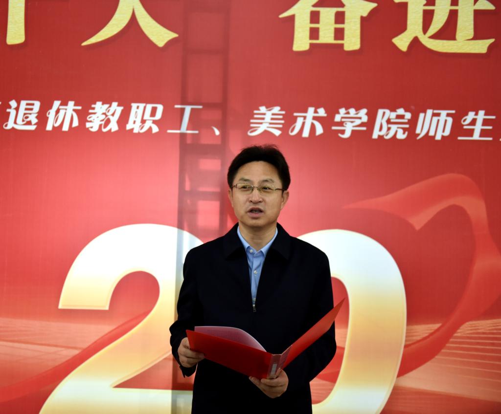 (离退休工作处 通讯员 崔玲)丹青书盛世,翰墨颂党恩。10月4日,由离退休工作处和美术学院联合举办的“喜迎二十大、奋进新征程”重阳节书画作品展在图书馆二楼大厅开展。校长张彦铎出席开展仪式并致辞。