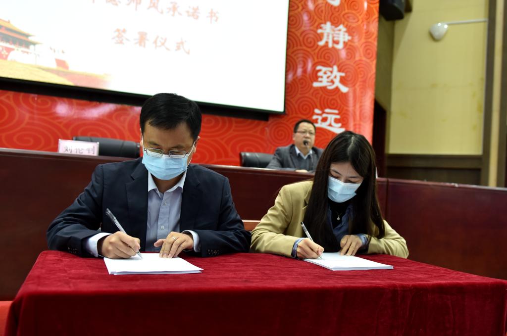 开班式上,举行了新进教师入职宣誓仪式和《师德师风承诺书》签订仪式。近70名新入职教师在学校2022年师德标兵熊明秀老师的带领下宣誓,为投身党和国家高等教育事业、为学校事业发展立下铮铮誓言并签署《师德师风承诺书》。