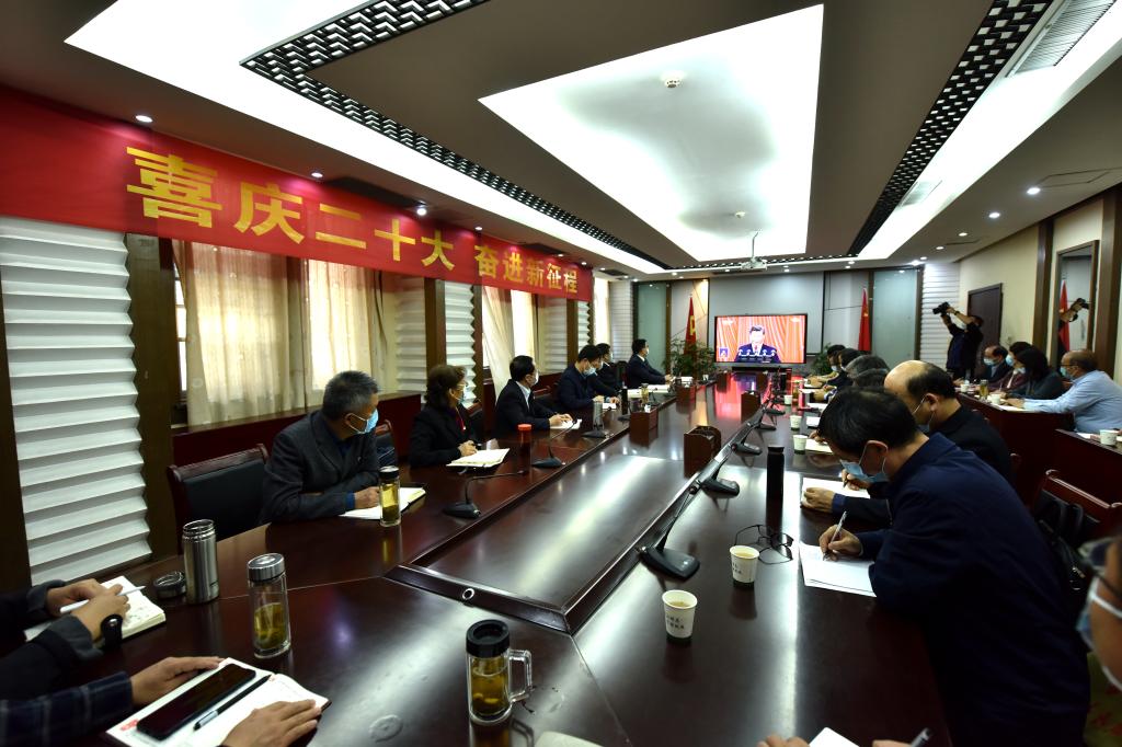 按照学校党委统一安排,全体在校校领导、党建工作领导小组成员单位负责人、学校省委市委宣讲团成员、校内宣讲团成员集中在行政楼第三会议室收看开幕会直播。
