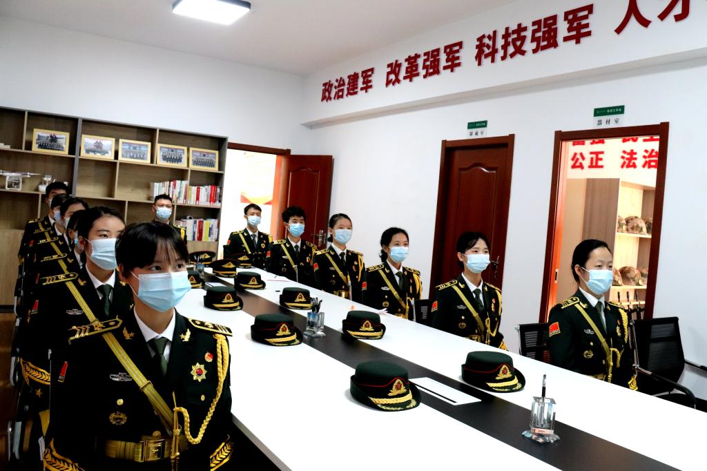 国旗护卫队队员在学校征兵工作站集中收看直播