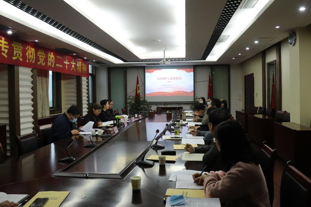 襄阳市委巡察办副主任付芳、市委巡察组专职副组长徐国强应邀分别作题为《如何撰写巡察报告》《如何做好政治巡察工作》专题讲座,并与参会人员就开展校内巡察工作进行了交流。