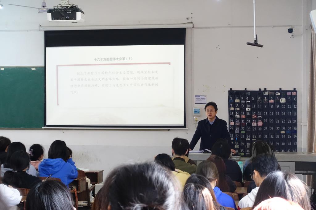 在文学与传媒学院广播电视编导2112班、数学与统计学院信息与计算科学2112班的课堂上,张彦铎围绕党的二十大报告提出的新理念新战略新举措,就“坚持党的全面领导”这一专题,以大量的史实和案例,将历史与现实贯通、理论与实践结合,深入浅出地讲述了为什么要坚持党的领导,怎样理解党的领导是全面的、系统的、整体的,怎样才能做到自觉在思想上、政治上、行动上同党中央保持高度一致等问题,让广大学生深刻领悟“两个确立”的决定性意义,纷纷表示要坚定“四个自信”、增强“四个意识”、坚决做到“两个维护”。