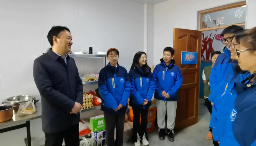 谭涛关切地询问支教队员是否适应当地的生活,并询问了支教队员们的教学工作情况,鼓励队员们适应环境,完成好教学任务。