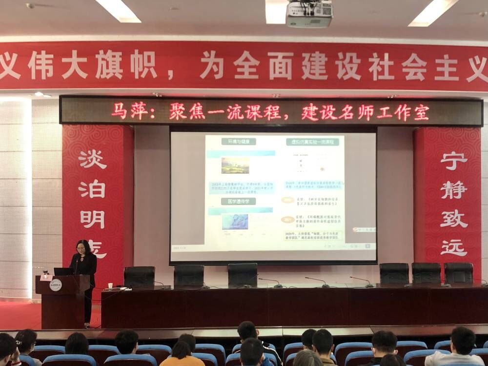 (教务处 通讯员 黄书校)3月10日下午,学校举行“教学大讲堂”活动,湖北名师、湖北科技学院马萍教授应邀作“聚焦一流课程,建设名师工作室”主题讲座,学校150余名教师聆听了报告会。报告会由教务处处长聂军主持。