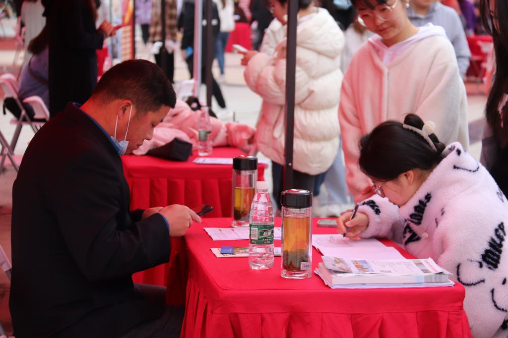 招聘会现场,毕业生主动向用人单位了解岗位需求,积极投递求职简历。各二级学院负责人、毕业年级辅导员主动对接用人单位,指导学生求职。