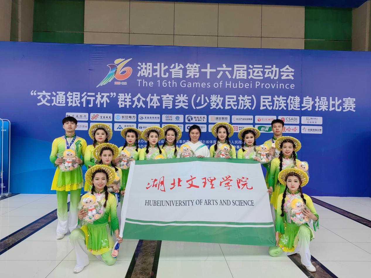 (体育学院 通讯员 王美楠)4月12-15日,我校健美操队在主教练王美楠老师的带领下,参加湖北省第十六届运动会群众体育类(少数民族)民族健身操中规定套路“茶韵民族健身操”“民族健身操18年版推广项目”和民族健身操自选套路“大中华”3个单项套路的比赛,经过为期2天的竞争,在11个参赛单位中脱颖而出,3个项目均获铜牌。我校学子突出的竞技能力水平和良好的赛风赛貌多次赢得现场雷鸣般的掌声,获得现场领导、裁判及观众的一致好评。