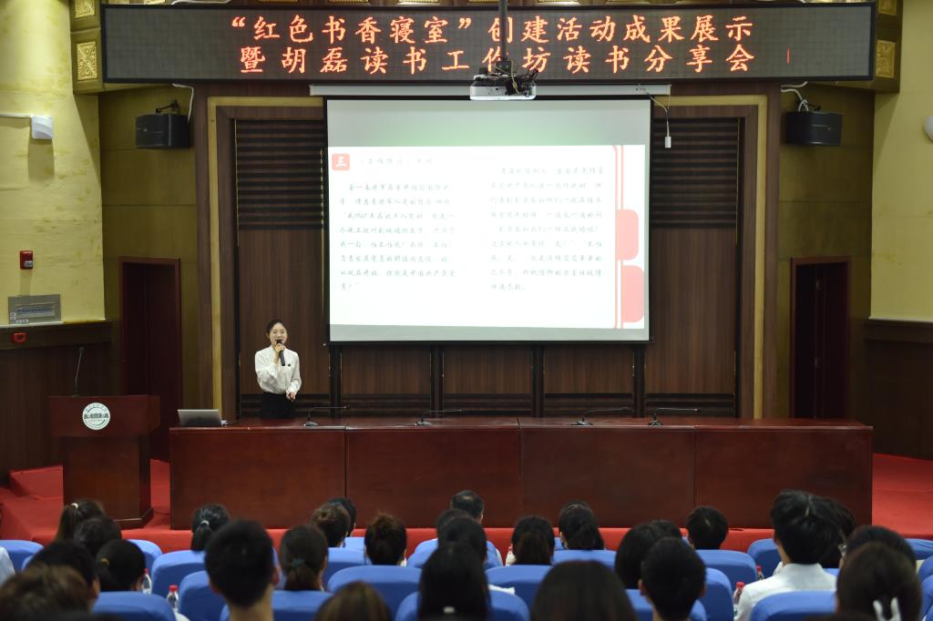 与会人员现场观摩了“红色书香寝室”创建活动成果展示暨“胡磊读书工作坊”读书分享会。