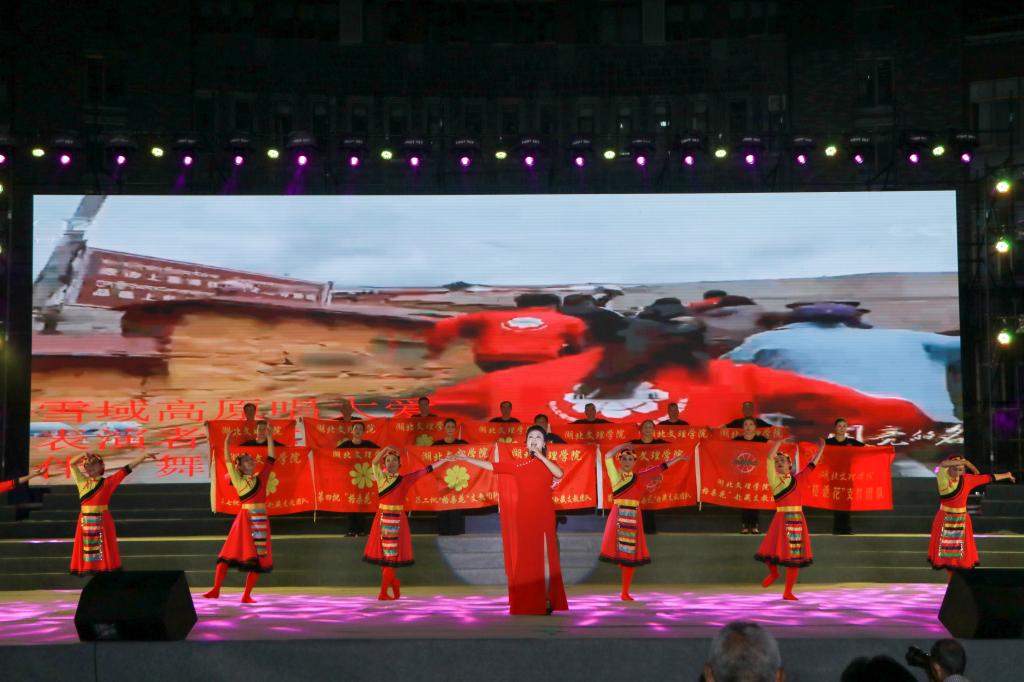 现场,楚风艺术团、玉箫春晓艺术团、艺风艺术团三支红色文艺轻骑兵队伍通过音舞诗画、歌剧、秧歌剧、情景表演等丰富的形式为观众带来了精彩的表演,既有《保卫黄河》《兄妹开荒》《南泥湾》《沁园春·雪》等经典作品,又带来了展现襄阳新风貌的创新节目《我是襄阳人》;歌舞表演《雪域高原高唱大爱》以学校“格桑花”赴藏支教团队为原型,表现了学校支教团队在雪域高原无私奉献的青春风采。