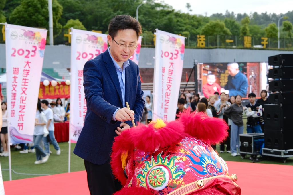 “一点天庭,福星高照,国泰民安……”在文艺节目汇演区,张彦铎和张樊为福狮点睛,正式拉开文化艺术节展演的序幕。