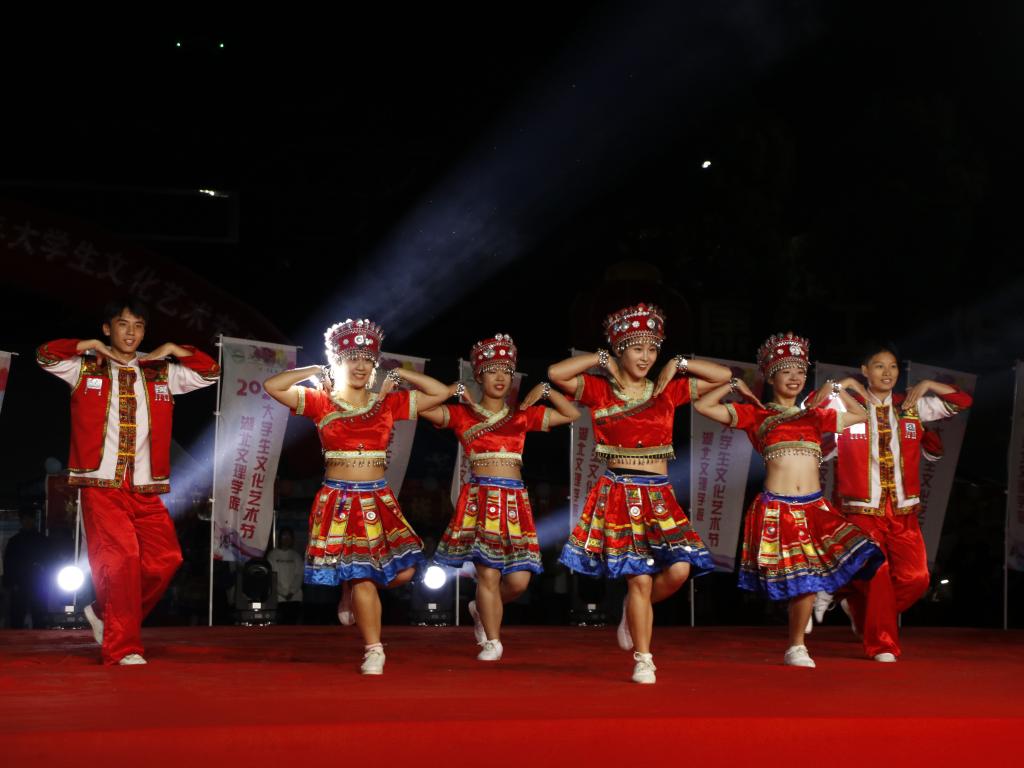 “微光”大赛作品展示区通过微视频、微纪录片、vlog等形式,展示11部一等奖获奖作品,引领学生认识美、体验美、欣赏美,用心感悟生活中的艺术美;“树人杯”大赛作品展示区通过书法、手绘、摄影等形式,展示50余幅获奖作品,弘扬中华优秀传统文化,提高学生审美和人文素养,促进学生全面发展;民族风情文化微展区通过民族服饰、饮食、手工艺品、风俗习惯等形式,分别展示土家族、壮族、苗族、藏族、蒙古族、维吾尔族、傣族、汉族等8个不同民族的风情特色,通过感受各民族优秀传统文化之美,进一步铸牢中华民族共同体意识;民族游戏体验区通过竹竿舞、踢苗毽、抖空竹等形式,分享5类游戏项目,增强学生交流互动,促进各民族交往交流交融,增进民族团结进步;文艺节目汇演区通过民族舞蹈、体育舞蹈、健身操、啦啦操、歌曲等形式,展示14个优秀作品,展现湖文青年积极向上、青春昂扬的精神风貌和时代光彩,以美育人、以美化人。