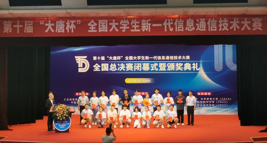 (物电学院 通讯员 朱娟)7月16日,第十届“大唐杯”全国大学生新一代信息通信技术大赛全国总决赛在北京落下帷幕。全国总决赛采用是预决赛制,我校物电学院12支队伍入围全国总决赛,参加5g关键技术实践赛(线上)和5g工程实践赛(线上)比赛,最终4支队伍晋级5g商用设备实践赛(线下),经过激烈角逐,荣获全国一等奖1项、二等奖3项、三等奖5项、优胜奖3项。