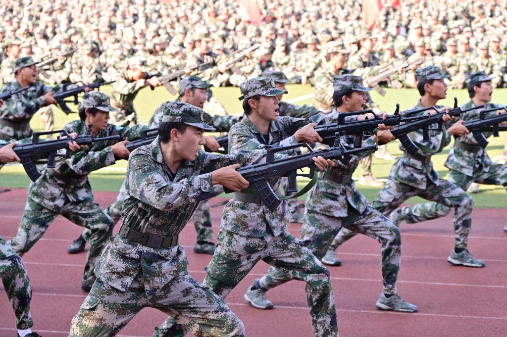 (通讯员 胡德坤 朱妍儒)9月1日下午,学校2022级本科学生军训总结表彰大会在雄壮的《分列式进行曲》中拉开帷幕。身着戎装的4200余名2022级学生们雄姿英发,气宇轩昂。17个学院组成的48个分列方队依次经过通过主席台,持枪方阵、擒敌拳方阵、刺杀操方阵依次进行展示,气贯磅礴展示赢得现场师生的阵阵掌声与喝彩。