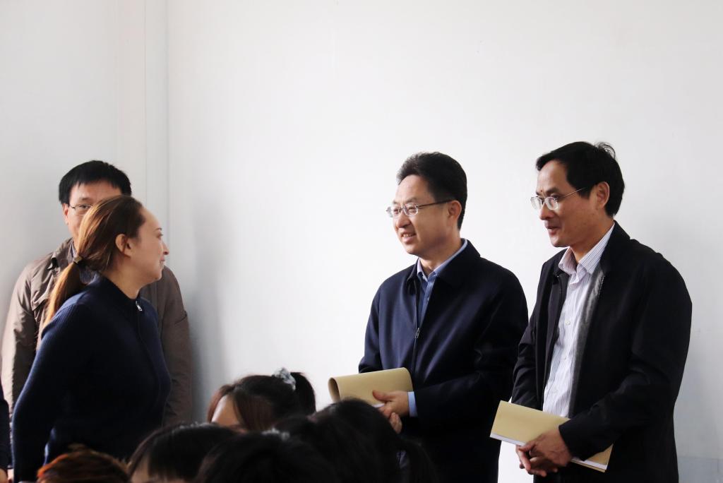 在国贸专业2311-2班级的课堂上,张彦铎听取了经济管理学院教师苏丹讲授的《世界经济概论》课程。在课后与苏丹交流时,张彦铎强调,要充分发掘专业课的思政元素,教育引导学生正确认识世界和中国发展大势,全面客观认识当代中国、看待外部世界,增强中国特色社会主义道路自信、理论自信、制度自信、文化自信。