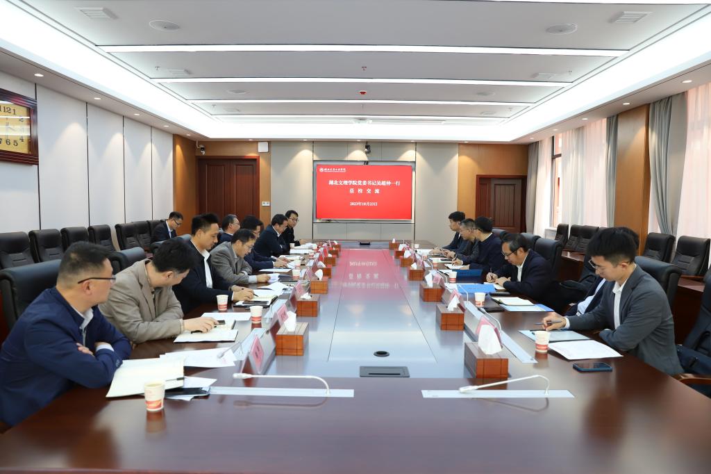 (学校办公室 通讯员 王帅)10月23日,学校党委书记吴超仲带队赴湖北汽车工业学院调研交流,双方就党建与思想政治工作、机构设置与专业优化布局、产业学院建设工作、大学生创新创业工作等开展座谈。湖北汽车工业学院党委书记张文学参加座谈,党委副书记李涛主持座谈会。
