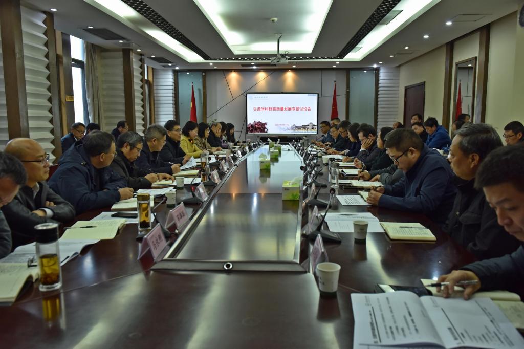 (发规处 通讯员 陈俊)根据学校“内涵建设 质量提升——促进综合性大学创建”思想大讨论专题研讨活动的安排,11月14日下午,学校召开交通学科群高质量发展专题讨论会。学校党委书记吴超仲出席会议并讲话,纪委书记、监察专员张宇辉出席会议,讨论会由副校长汪云主持。