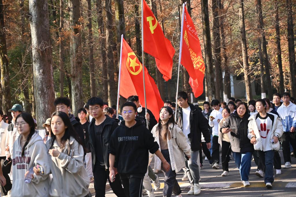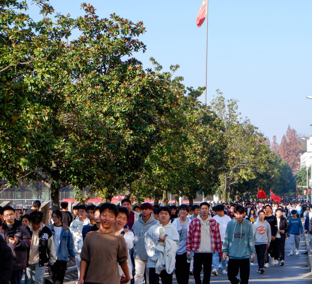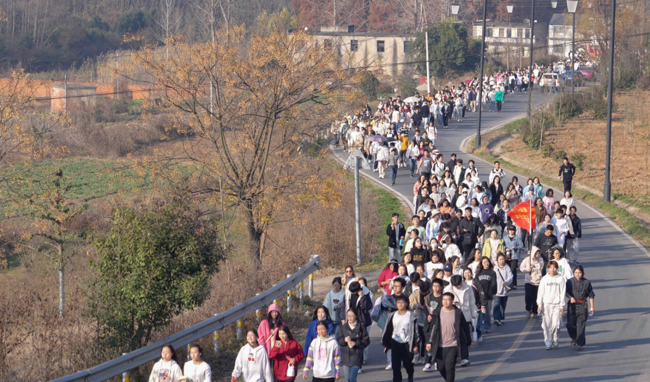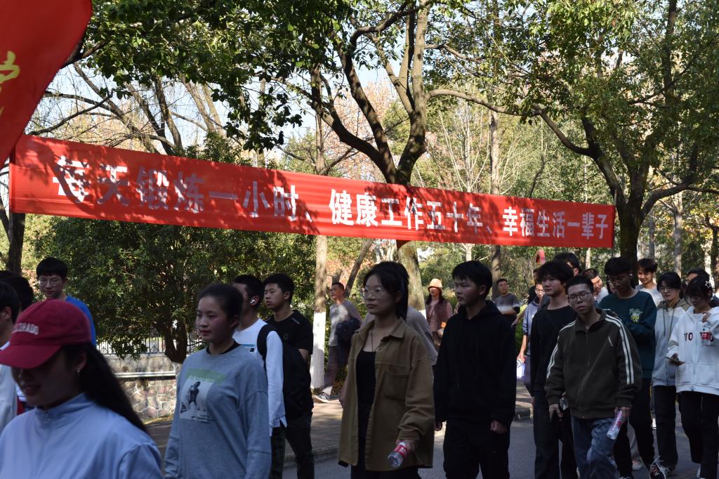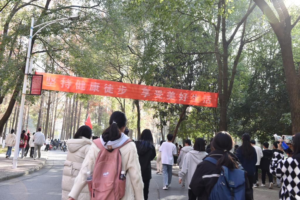 冬日的阳光下,万余名师生在徒步中享受运动的乐趣。