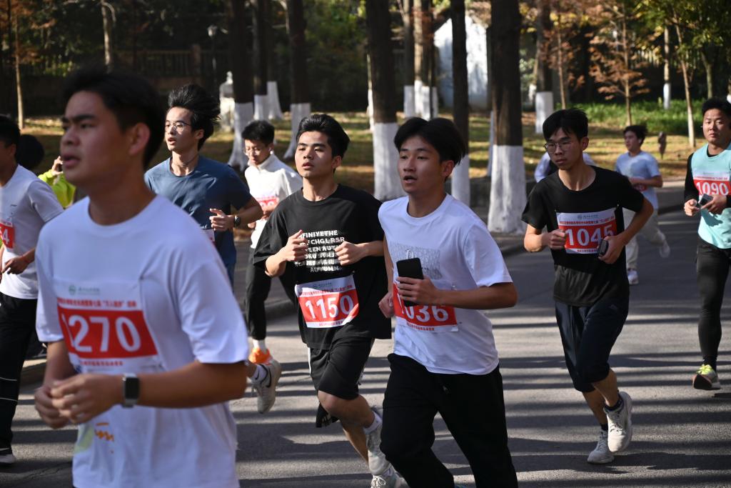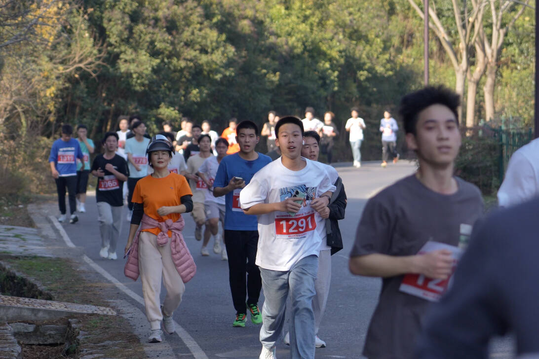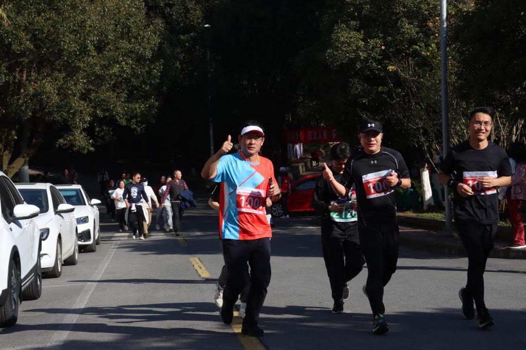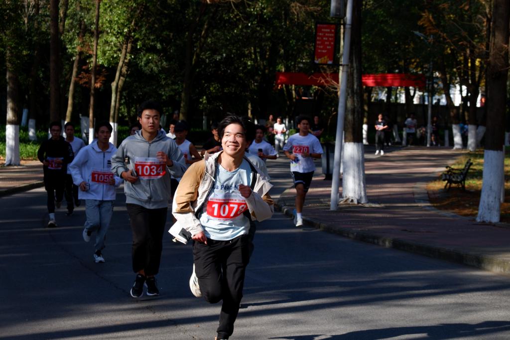 随着枪声落下,参加长跑的师生跃过起跑线,迈着矫健的步伐奋力奔跑。