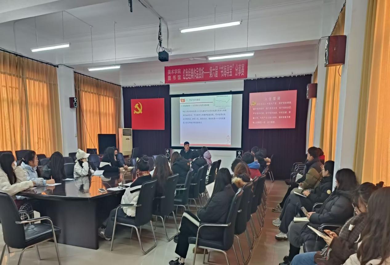 (美术学院 通讯员 王正旭)12月29日,副校长曹健教授为美术学院师生讲授题为《推进建设文化强国——学习习近平关于新时代中国特色社会主义文化建设重要论述》的专题思政课。