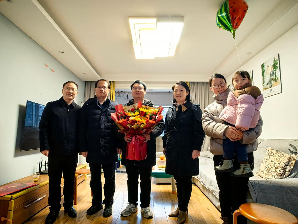 在程威家中,慰问组一行为程威送上鲜花和慰问信,并与程威及其家人亲切交谈,详细了解他们的工作和生活情况,鼓励夫妻二人继续弘扬孝老爱亲的良好家风,引领全社会崇德向善。