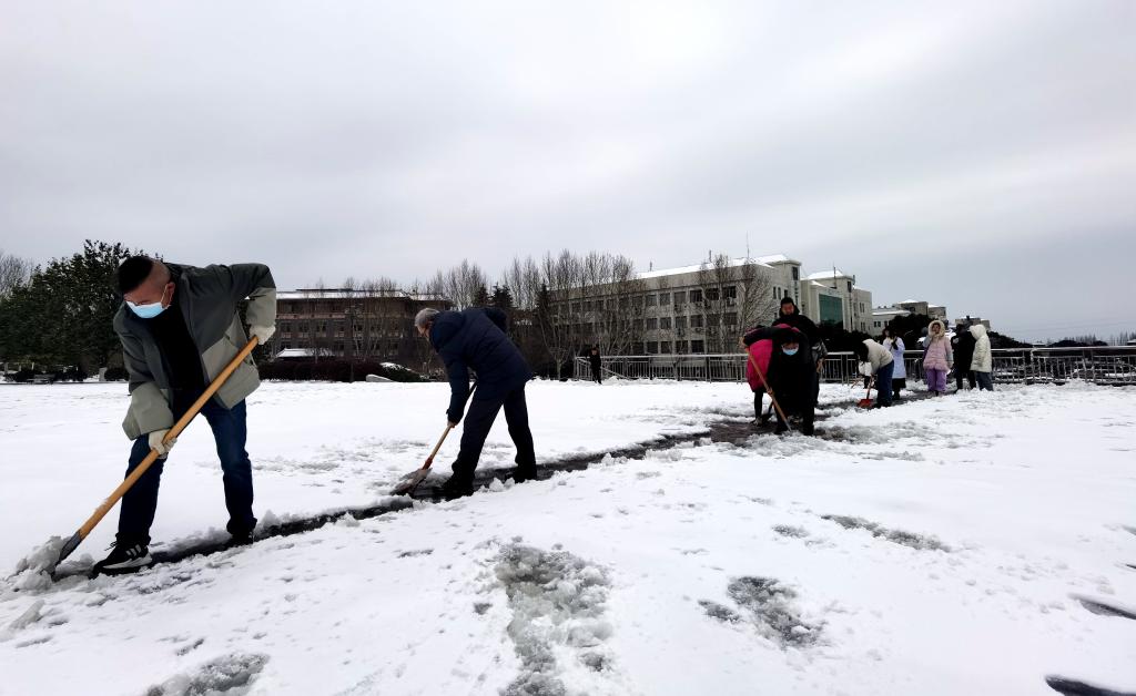 继培学院教职工积极清理办公楼门前及主干道积雪