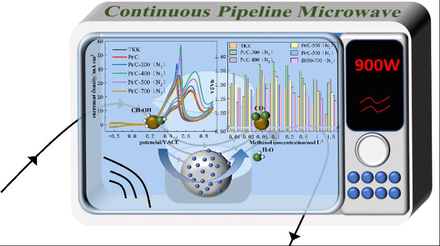 该论文在汽车与交通工程学院副教授张创指导下,与清华大学合作完成。文章利用微波辐射快速、均匀加热含有碳黑的h2ptcl6的乙二醇混合液合成碳负载的纳米铂,研制了一种简单有效的连续微波技术制备直接甲醇燃料电池催化剂。该催化剂铂颗粒均匀的负载碳表面具有均匀的形状、平均粒径达到3.02nm,催化活性和耐久性高于商业pt/c催化剂,对燃料电池催化剂的商业应用和量产具有参考价值和指导意义。