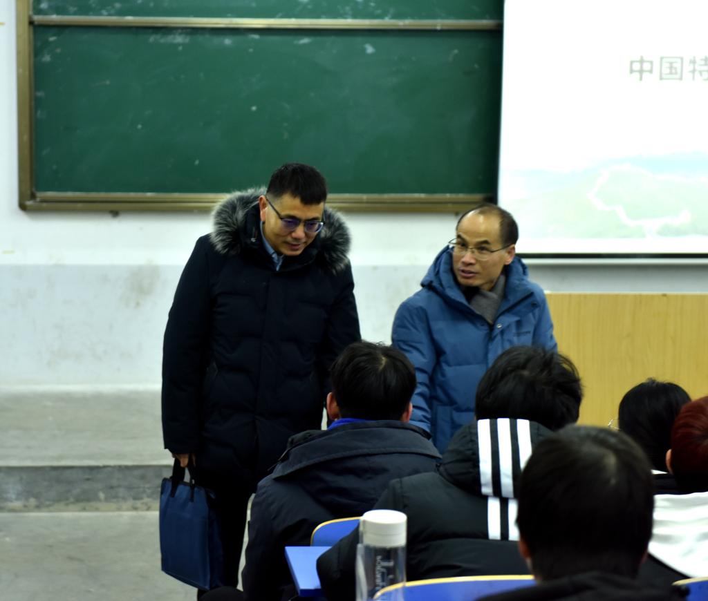 学校党委书记吴超仲走进n6-jt01教室,与汽车与交通工程学院自动化2211、2212班学生同上马克思主义学院教师王悦洲讲授的《习近平新时代中国特色社会主义思想概论》,吴超仲边听边记,详细记录教师讲授情况。课后吴超仲与王悦洲就课堂讲授情况进行交流,对讲课效果表示充分肯定,并鼓励他在讲课内容中进一步增加同学们熟悉的案例,让学生愿意听、听得懂,帮助学生透彻理解相关理论知识。