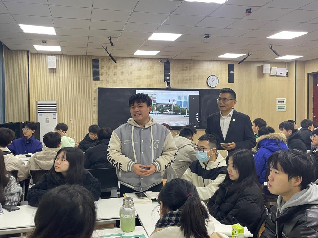 课前,吴超仲组织教学团队老师研究教学方案,对学生提前发放学习资料,布置课程作业,并将学生进行分组,设定项目化学习目标,要求学生在课堂上充分研讨与互动。课中,吴超仲采用“教师讲授、师生研讨、学生讲解”的教学方式,组织学生学习“智能交通系统”基本概念、发展历程、未来发展方向等知识。学生们踊跃参与问题抢答,分享研讨成果,吴超仲就每组陈述内容进行细致点评和指导。师生积极互动,课堂气氛活跃。