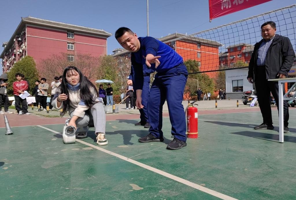 襄阳市消防支队宣教科教官舒美琪应邀作消防灭火、疏散逃生知识培训。数学与统计学院、计算机工程学院作为首批参加演练单位,共组织500多名学生参加培训,并在北区21栋公寓楼开展逃生演练。