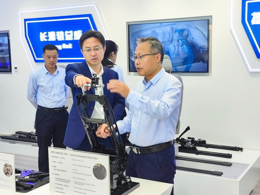 调研期间,张彦铎一行参观了公司产品陈列室、调角器工厂与精密制造工厂,详细了解了公司的产业发展情况。
