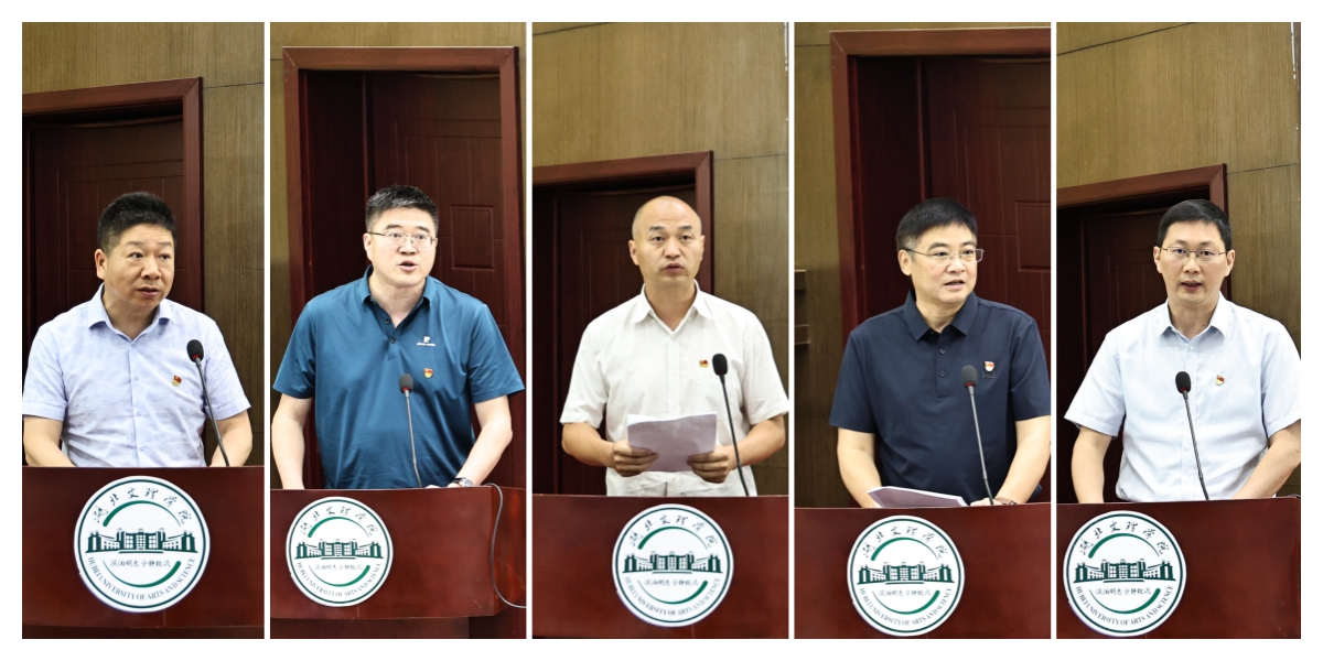 张银波、李恒威、王超、刘向东、陈家平代表各学习小组交流发言,分享学习成果。