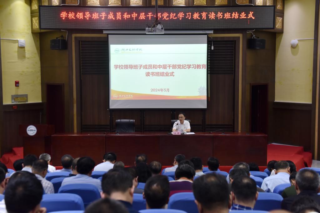 学校领导班子成员和中层干部党纪学习教育读书班成员参加集体学习和结业式。