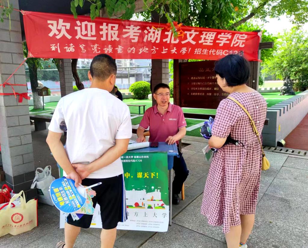 (新闻网综合消息)6月25日,湖北高考成绩公布,学校招生工作组分赴各地开展招生宣传工作,为考生及家长解惑答疑,让考生更加了解学校,引导考生报考我校。