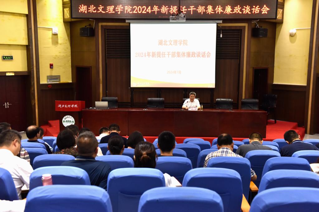 (纪委 ・ 监察专员办公室 通讯员 肖孟佳)为扎实推进全面从严治党向纵深发展,促进新提任干部担当作为和廉洁自律,7月12日,学校在致远楼一楼报告厅召开新提任中层领导干部集体廉政谈话会。学校纪委书记、监察专员张宇辉出席会议,并对新提任的64名中层干部进行集体廉政谈话。